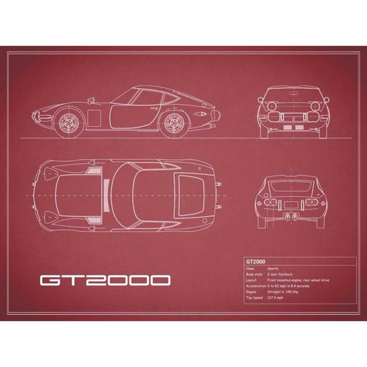 Toyota GT2000-Maroon White Modern Wood Framed Art Print by Rogan, Mark