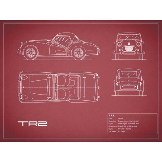 Triumph TR2-Maroon White Modern Wood Framed Art Print by Rogan, Mark
