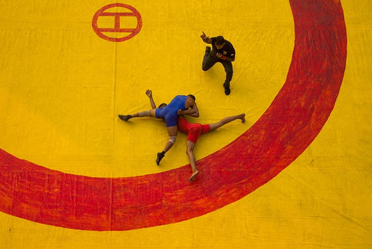 Dangal White Modern Wood Framed Art Print with Double Matting by Mukherjee, Suvajit