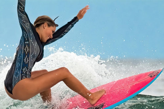 Happy Surfing 1 White Modern Wood Framed Art Print with Double Matting by Ranfuchs