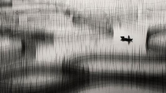 Walking On The Line White Modern Wood Framed Art Print with Double Matting by Nienartowicz, Karol
