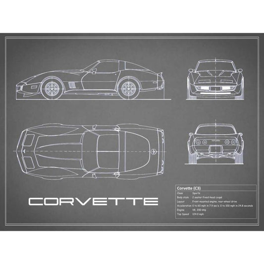 Corvette C3-Grey White Modern Wood Framed Art Print by Rogan, Mark