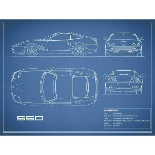 Ferrari 550-Blue White Modern Wood Framed Art Print by Rogan, Mark