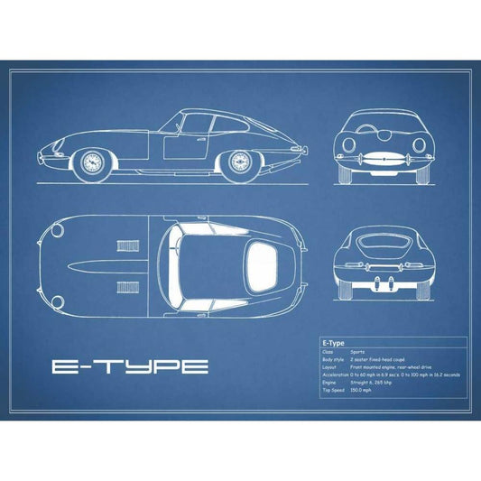 Jaguar E-Type-Blue White Modern Wood Framed Art Print by Rogan, Mark