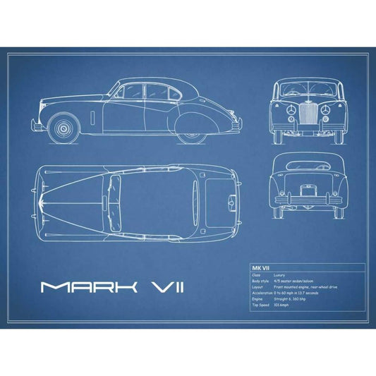 Jaguar MkVII-Blue White Modern Wood Framed Art Print by Rogan, Mark