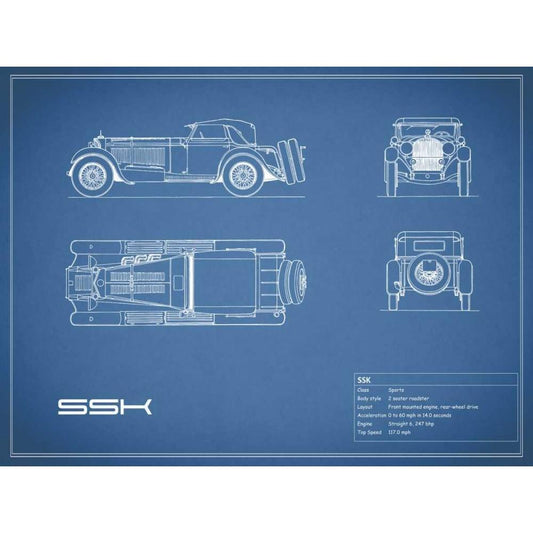 Mercedes SSK-Blue White Modern Wood Framed Art Print by Rogan, Mark