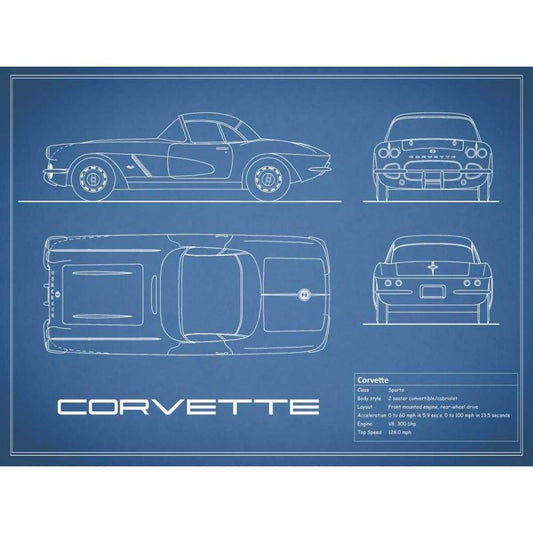 Corvette 33BHP-Blue White Modern Wood Framed Art Print by Rogan, Mark