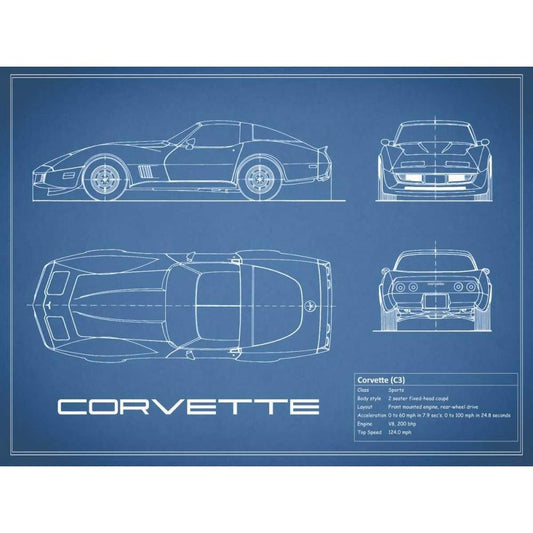 Corvette C3-Blue White Modern Wood Framed Art Print by Rogan, Mark