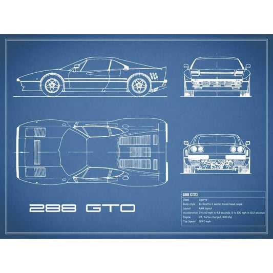 Ferrari 288-GTO-Blue White Modern Wood Framed Art Print by Rogan, Mark