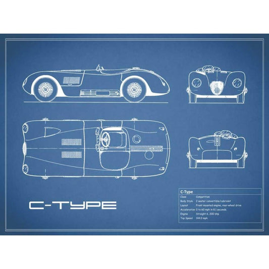 Jaguar C-Type-Blue White Modern Wood Framed Art Print by Rogan, Mark