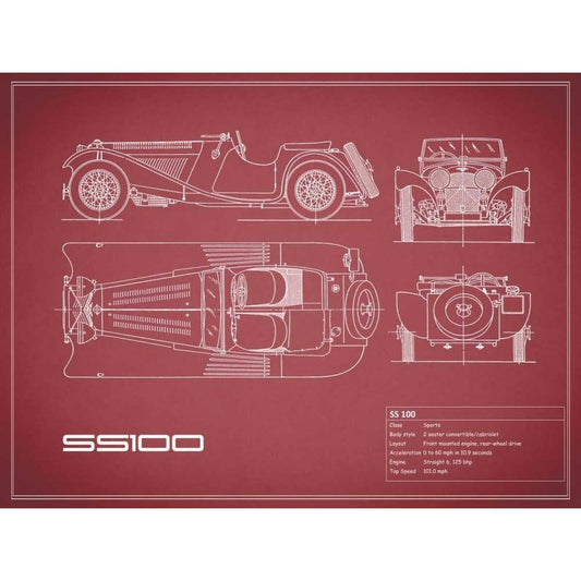 Jaguar SS-100-Maroon White Modern Wood Framed Art Print by Rogan, Mark