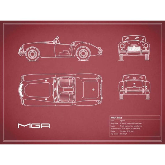 MGB-Maroon White Modern Wood Framed Art Print by Rogan, Mark