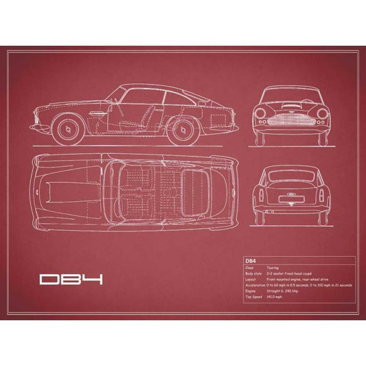 Aston DB4 -Maroon White Modern Wood Framed Art Print by Rogan, Mark