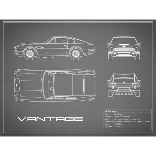 Aston V8 Vantage-Grey White Modern Wood Framed Art Print by Rogan, Mark