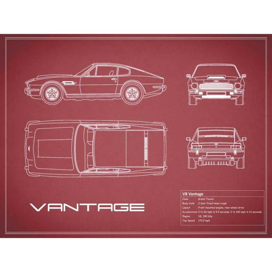 Aston V8 Vantage-Maroon White Modern Wood Framed Art Print by Rogan, Mark