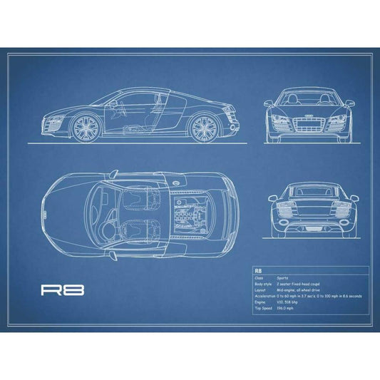 Audi R8 V10-Blue White Modern Wood Framed Art Print by Rogan, Mark