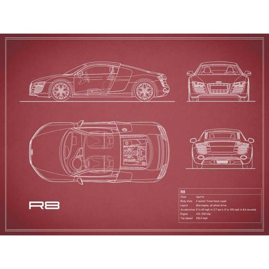 Audi R8 V10-Maroon White Modern Wood Framed Art Print by Rogan, Mark