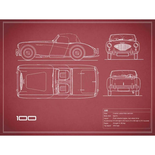 Austin-Healey 100-Maroon White Modern Wood Framed Art Print by Rogan, Mark