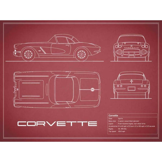 Corvette 33BHP-Maroon White Modern Wood Framed Art Print by Rogan, Mark