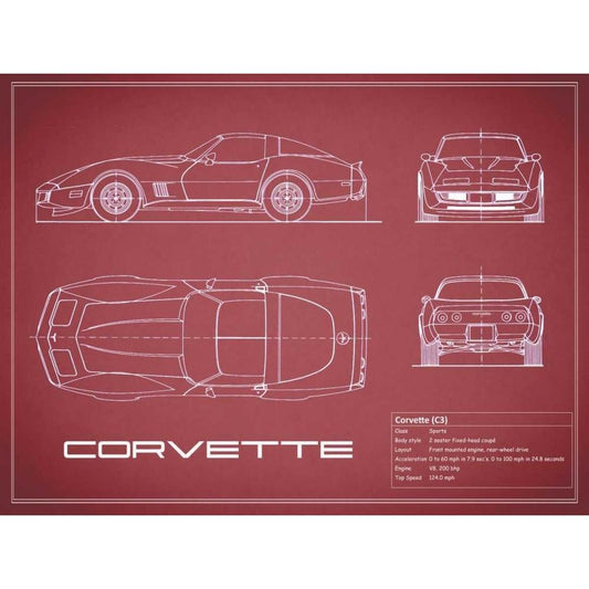 Corvette C3-Maroon White Modern Wood Framed Art Print by Rogan, Mark