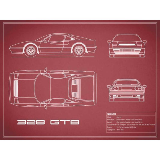 Ferrari 328-GTB-Maroon White Modern Wood Framed Art Print by Rogan, Mark