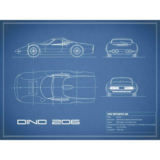 Ferrari Dino 206 1965-Blue White Modern Wood Framed Art Print by Rogan, Mark