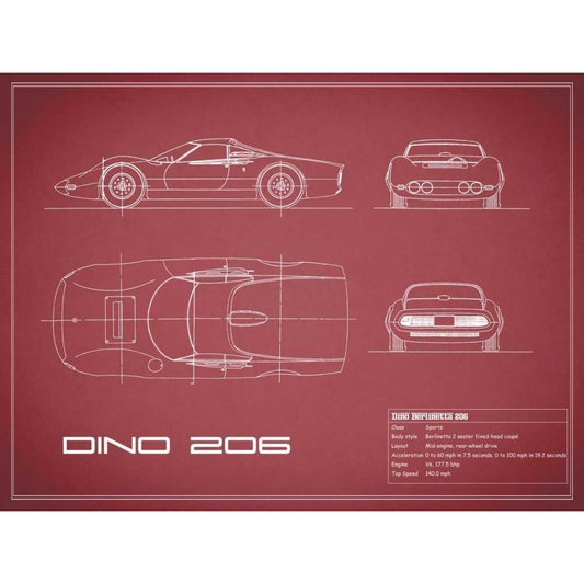Ferrari Dino 206 1965-Maroon White Modern Wood Framed Art Print by Rogan, Mark