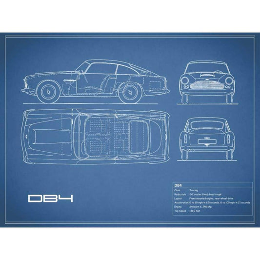Aston DB4 -Blue White Modern Wood Framed Art Print by Rogan, Mark