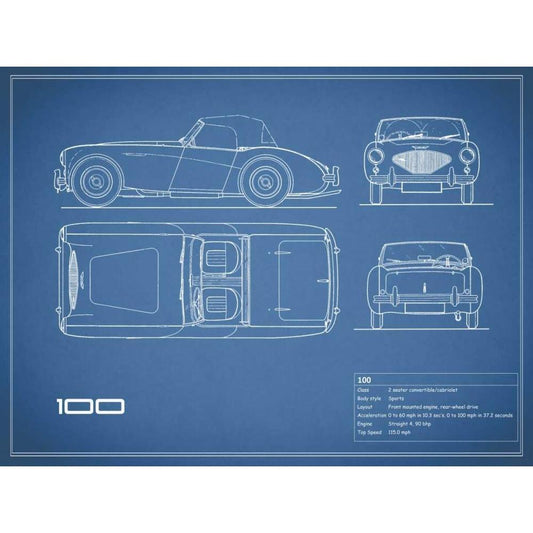 Austin-Healey 100-Blue White Modern Wood Framed Art Print by Rogan, Mark