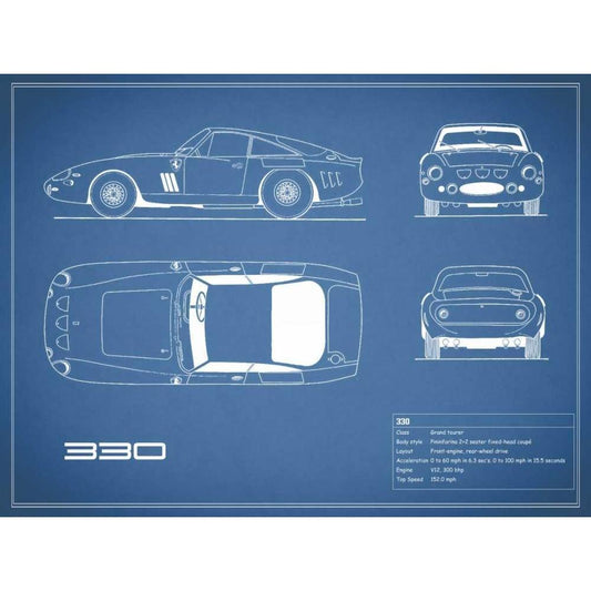 Ferrari 330-Blue White Modern Wood Framed Art Print by Rogan, Mark