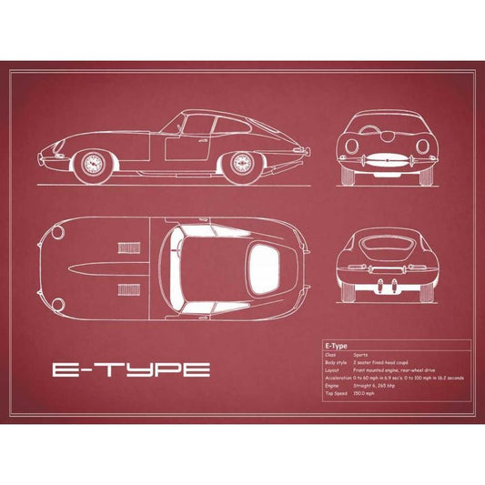 Jaguar E-Type-Maroon White Modern Wood Framed Art Print by Rogan, Mark