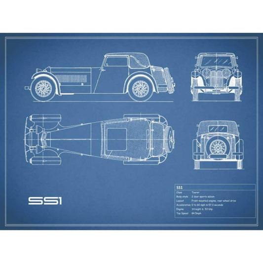 Jaguar SS1-Blue White Modern Wood Framed Art Print by Rogan, Mark