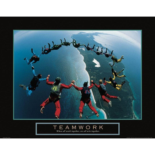Teamwork - Skydivers White Modern Wood Framed Art Print by Frontline