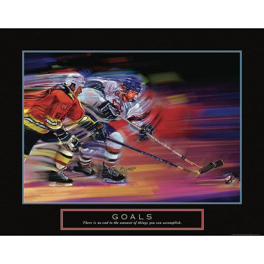 Goals - Hockey White Modern Wood Framed Art Print by Frontline