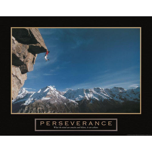 Perseverance - Cliffhanger White Modern Wood Framed Art Print by Frontline