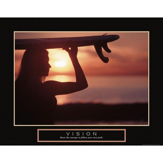 Vision - Female Surfer White Modern Wood Framed Art Print by Frontline