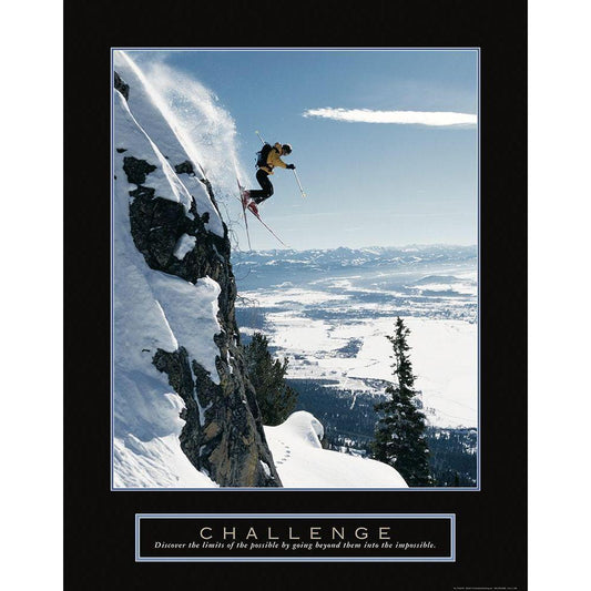 Challenge - Extreme Skier White Modern Wood Framed Art Print by Frontline