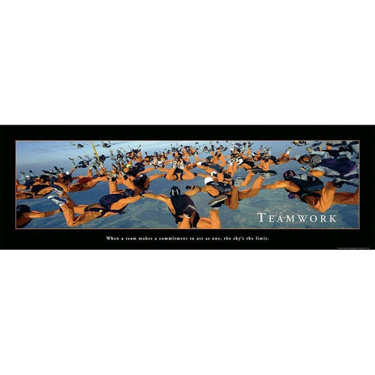 Teamwork - Skydivers White Modern Wood Framed Art Print by Frontline