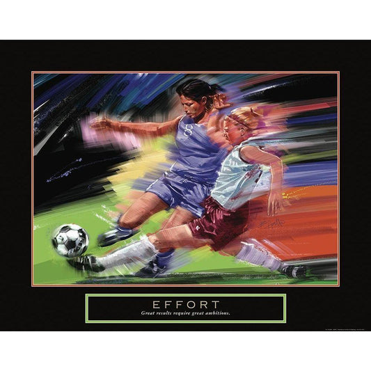 Effort - Girl Soccer White Modern Wood Framed Art Print by Frontline