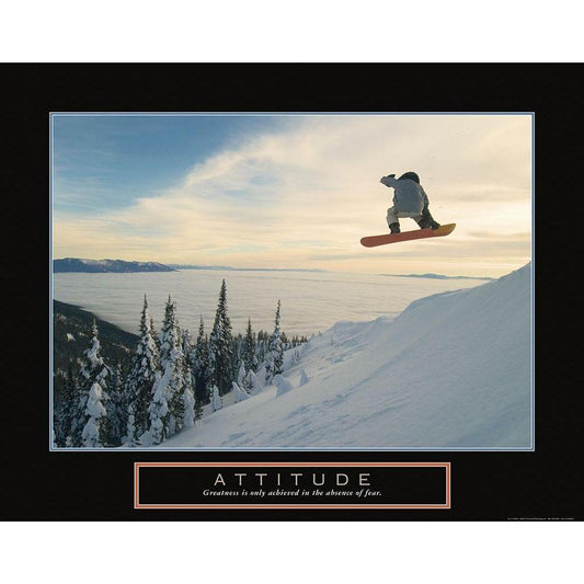 Attitude - Snowboarder White Modern Wood Framed Art Print by Frontline