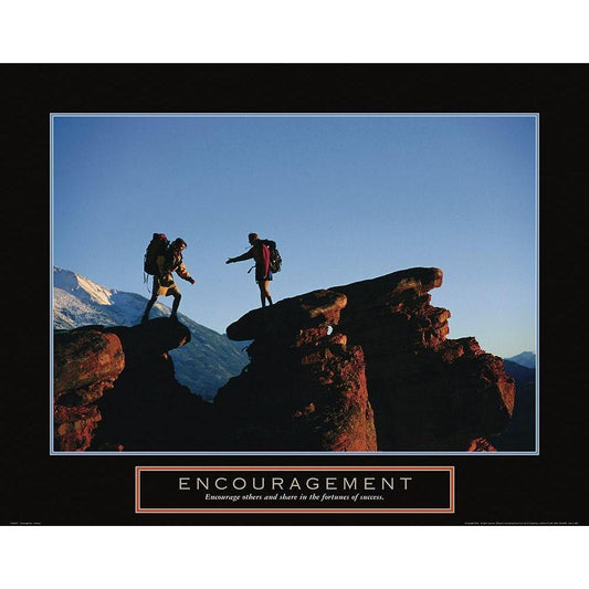 Encouragement - Rock Climbers White Modern Wood Framed Art Print by Frontline
