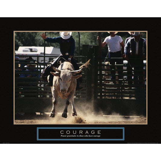 Courage - Bull Rider White Modern Wood Framed Art Print by Frontline