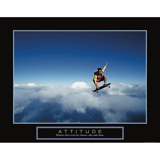 Attitude - Skateboarder White Modern Wood Framed Art Print by Frontline