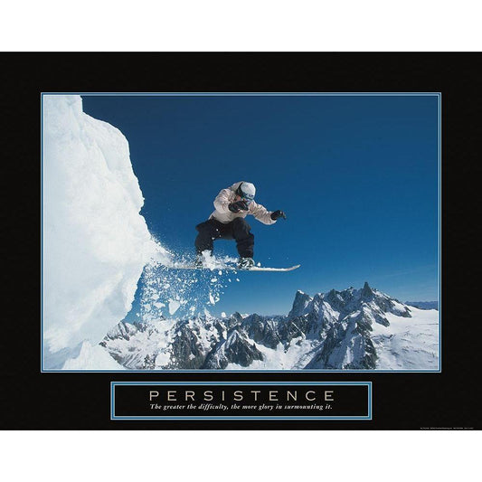Persistence - Snowboarder White Modern Wood Framed Art Print by Frontline