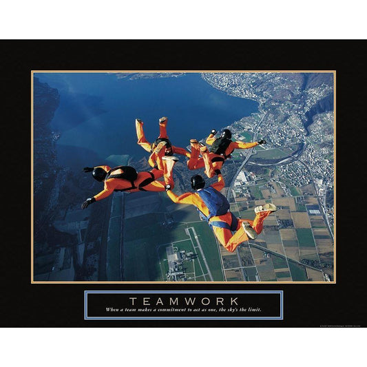 Teamwork - Sky Divers White Modern Wood Framed Art Print by Frontline