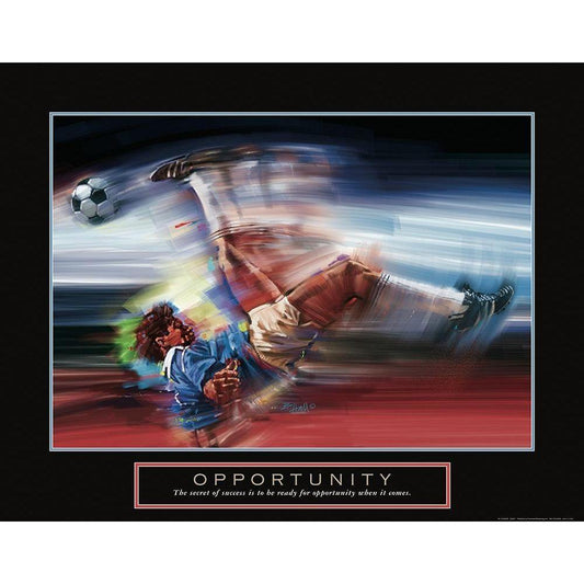 Opportunity - Soccer Shot White Modern Wood Framed Art Print by Frontline