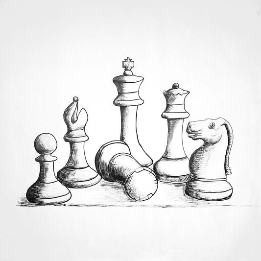 CHESS GAME PIECES White Modern Wood Framed Art Print by Atelier B Art Studio