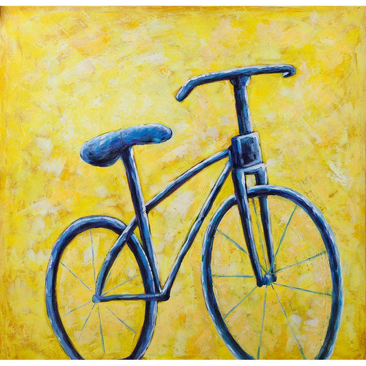BLUE BIKE ON YELLOW BACKGROUND White Modern Wood Framed Art Print by Atelier B Art Studio