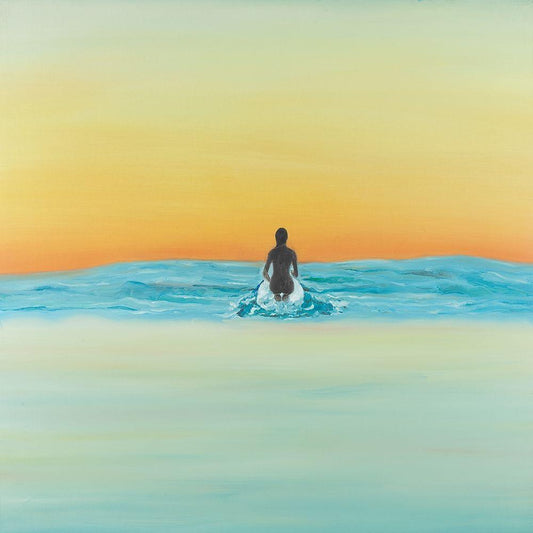A Surfer Swimming by Dawn White Modern Wood Framed Art Print by Atelier B Art Studio