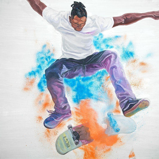SKATER White Modern Wood Framed Art Print by Atelier B Art Studio